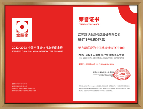 近日,“金璧獎·2023中國戶外媒體創新大會”以“超級媒體、超級流量、超級品牌”為主題盛大開幕,由福日電子成員企業邁銳光電匠心打造的南京“珠江1號巨幕”憑借在品牌增值、流量變現、媒體傳播等方面的傲人成績,成功斬獲“甲方最喜愛的中國地標媒體TOP100”榮譽。